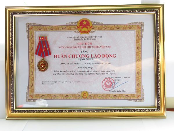 Trong suốt quá trình hình thành và phát triển, Công ty Cổ phần Xuất nhập khẩu Sa Giang đã vinh dự nhận nhiều danh hiệu và phần thưởng cao quý của Nhà nước, tổ chức trong nước và quốc tế.