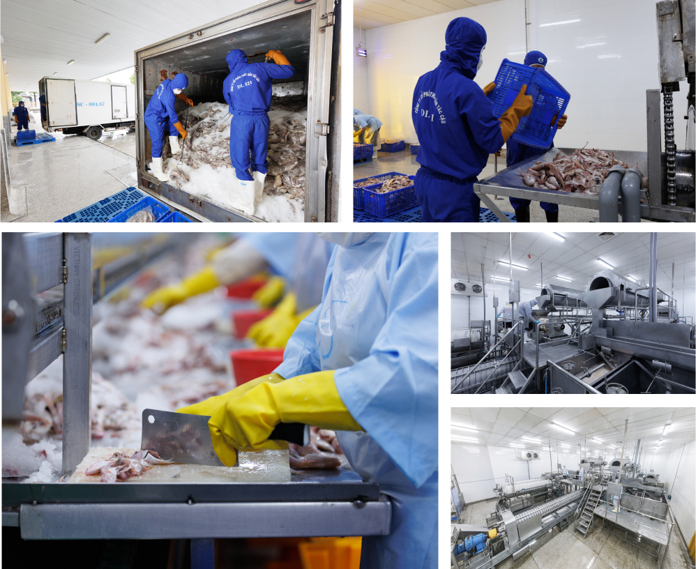 Thuận lợi của công ty là có nhà máy sản xuất rộng 4.000m2 nằm trong Khu Cảng cá Tắc Cậu, thuộc xã Bình An, huyện Châu Thành, tỉnh Kiên Giang, một vị trí đắc địa ngay trung tâm vùng nguyên liệu có chất lượng tốt trong cả nước, giúp việc thu mua nguyên liệu thuận tiện cũng như vận chuyển thành phẩm dễ dàng và tiết kiệm chi phí. Nguồn nguyên liệu cá tự nhiên tươi ngon được ngư dân đánh bắt về cung cấp đều đặn cho công ty, trung bình khoảng 50 tấn cá nguyên liệu/ngày, vào lúc cao điểm như dịp cuối năm có thể lên đến 100 tấn/ngày.
