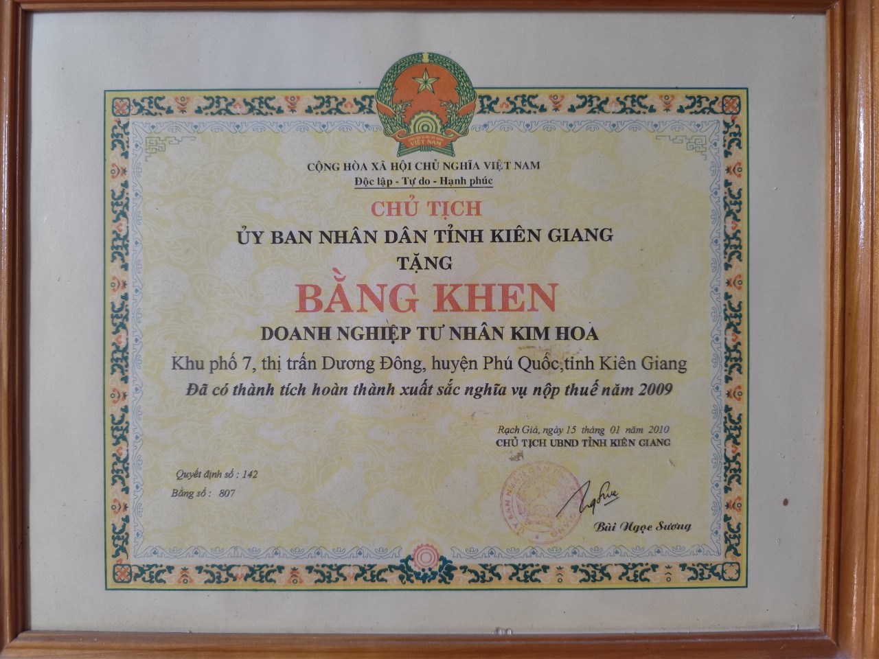 - Năm 2009, 2010, 2011, 2012, 2014, 2019, , do UBND tỉnh Kiên Giang tặng