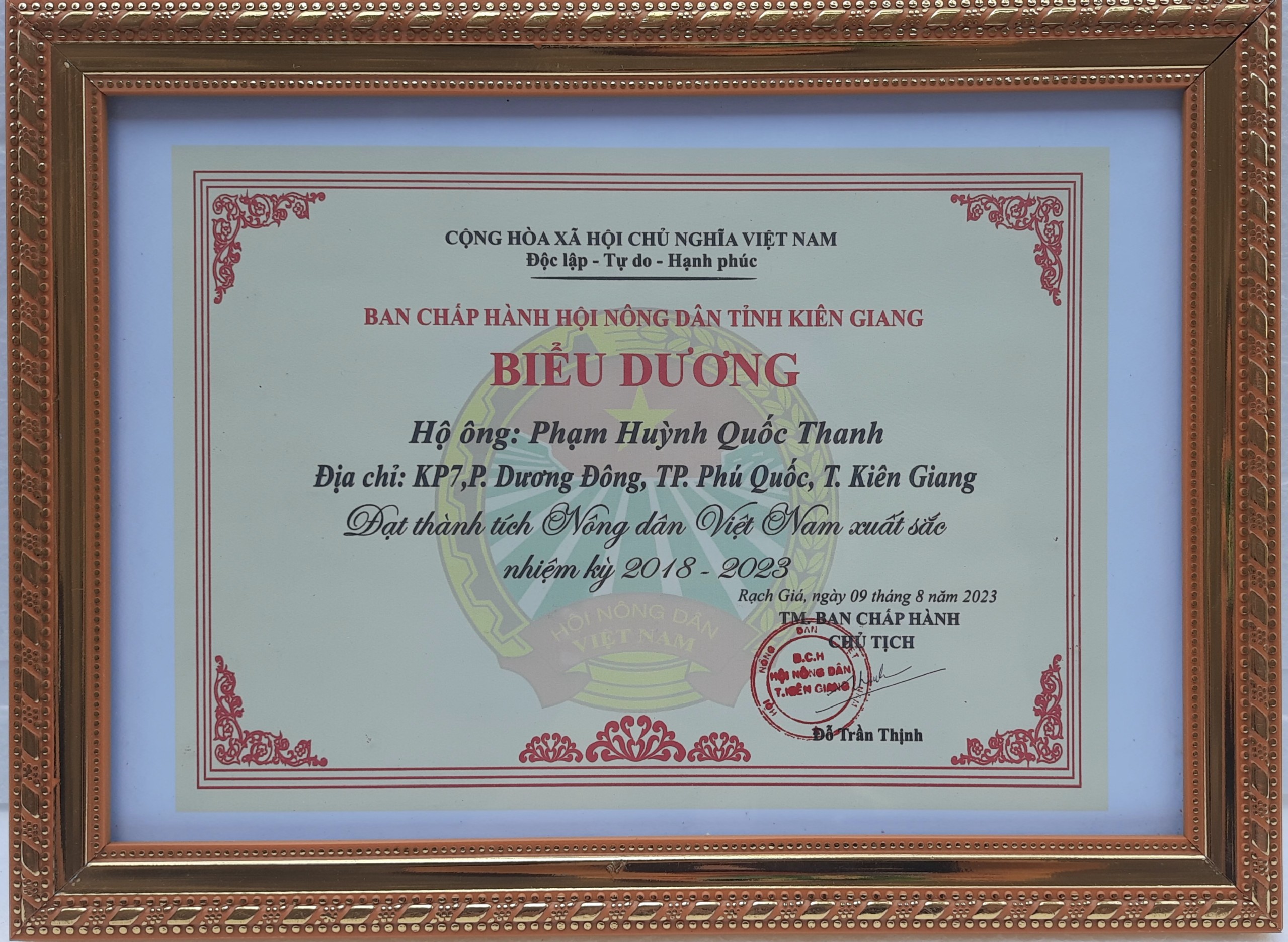 - Đạt thành tích Nông dân Việt Nam xuất sắc nhiệm kỳ 2018-2023