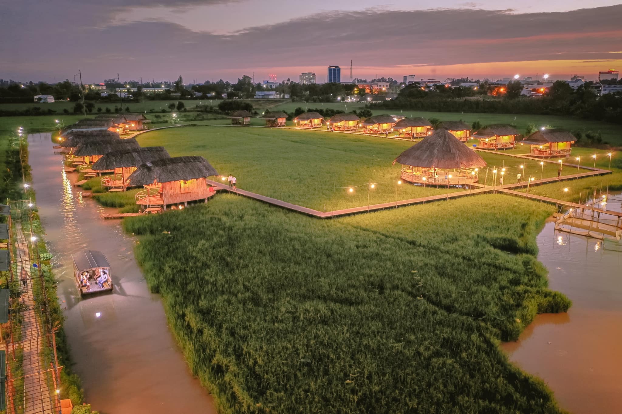 Với diện tích hơn 6.5ha bao quanh là những cánh đồng lúa đan xen với đồng hoa sen tạo nên một cảm giác yên ả, hoà huyện và yên bình giữa lòng thành phố tấp nập.