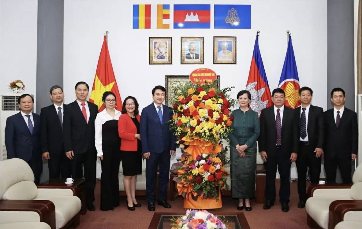 Thay mặt Bộ trưởng Bùi Thanh Sơn và các cán bộ Bộ Ngoại giao, Thứ trưởng Lê Anh Tuấn gửi lời chúc mừng tới Đại sứ Chea Kimtha cùng toàn thể cán bộ, nhân viên Đại sứ quán Campuchia tại Việt Nam và gia đình một năm mới nhiều niềm vui và hạnh phúc.