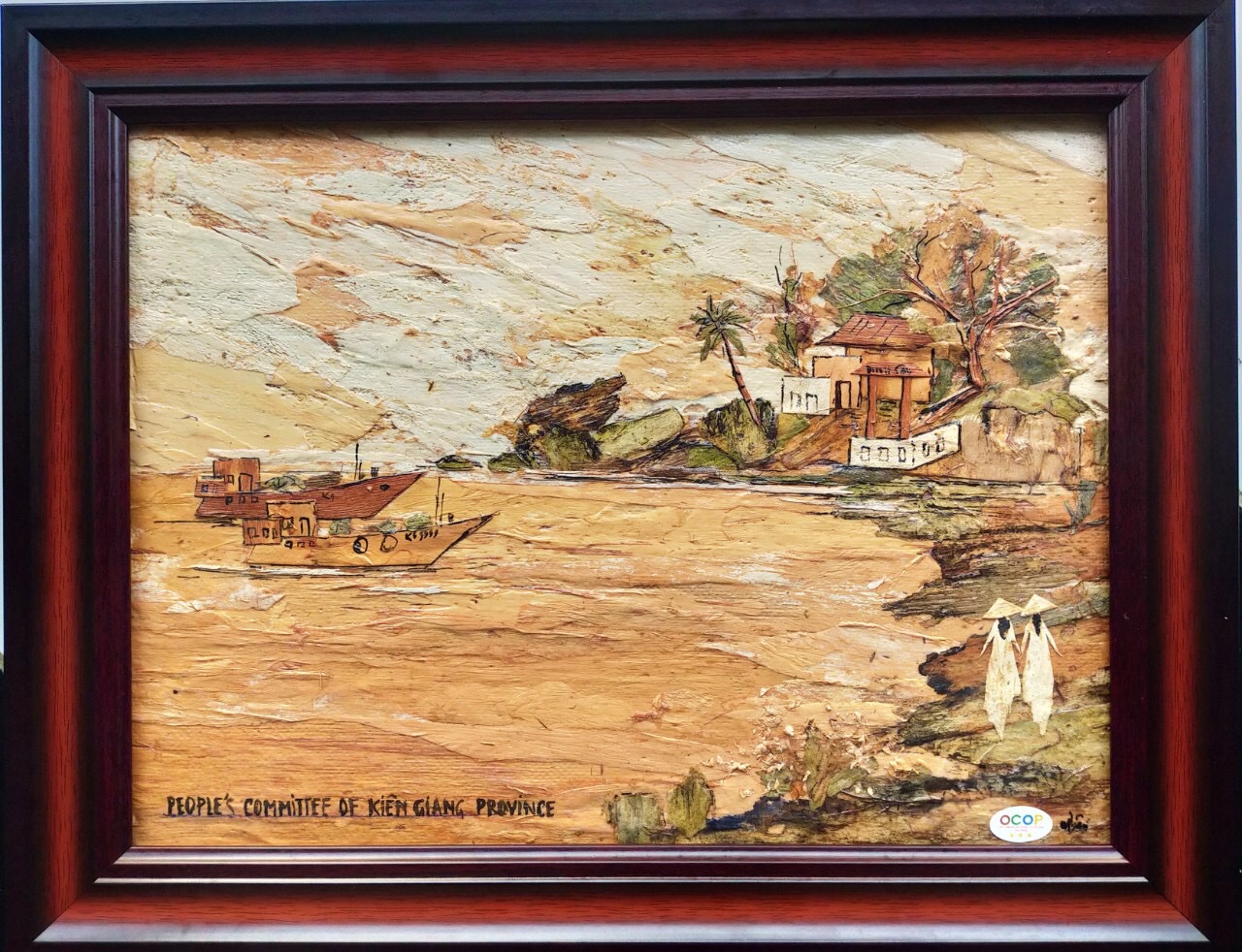 Tranh vỏ tràm được lãnh đạo tỉnh Kiên Giang tặng Nguyên Phó Chủ tịch nước Trương Mỹ Hoa