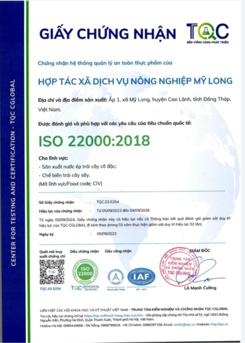 Trích dẫn: Trang Thông Tin HTX DVNN Mỹ Long - Cao Lãnh