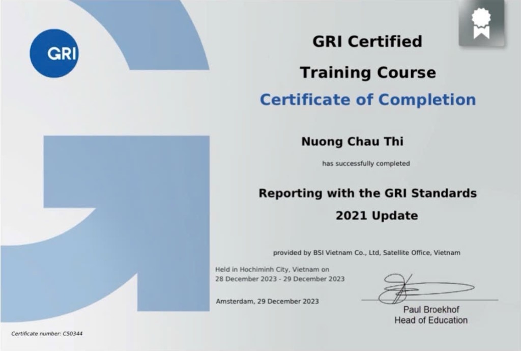 - Top 10 Doanh nhân xuất sắc – Vòng chung kết Chương trình Sáng kiến ESG 2023.