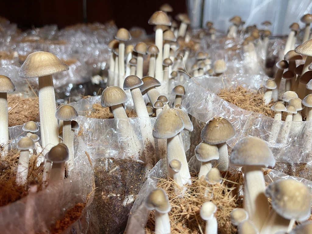 - Trồng nấm hữu cơ (nấm mối đen, bào ngư, linh chi, đông trùng hạ thảo) dưới mái pin năng lượng mặt trời, sử dụng giá thể từ rơm rạ, cám gạo, cám bắp.