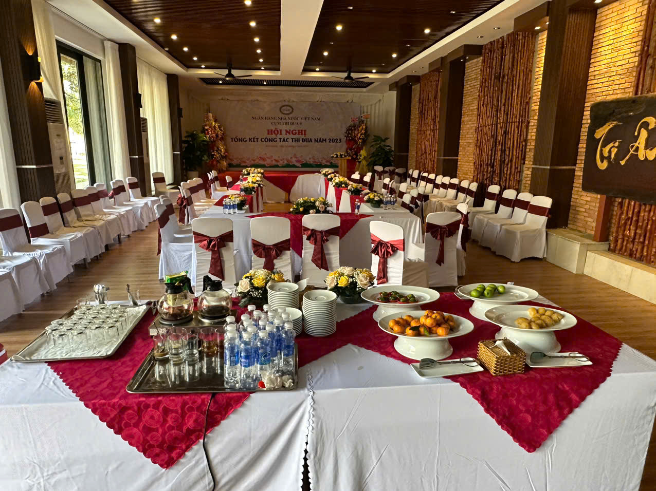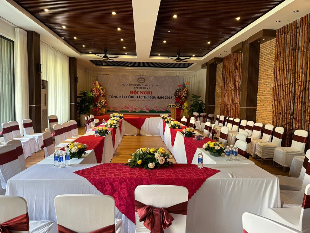 Phòng hội nghị tại Hà Tiên Xưa Hotel & Resort được trang bị hiện đại và tiện dụng, là địa điểm phù hợp để tổ chức những buổi hội họp, những chương trình đào tạo cho các đơn vị, tổ chức, doanh nghiệp, ... tại thành phố Hà Tiên với sức chứa từ 50 người trở lên, với các tiện ích như máy chiếu LCD, màn hình trượt, micro không dây, ...
