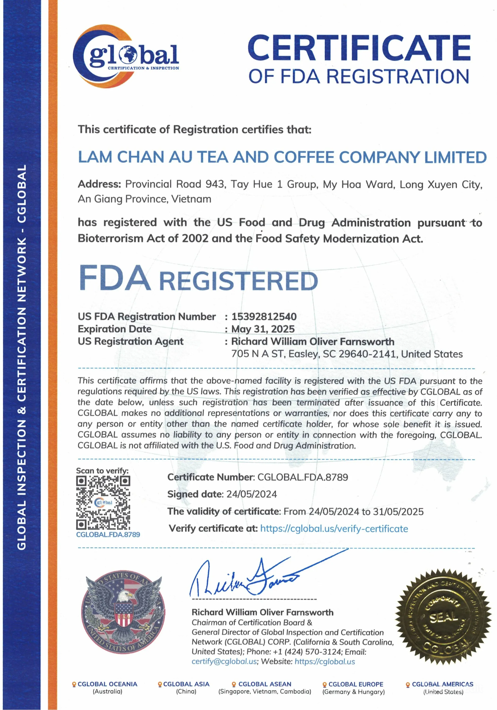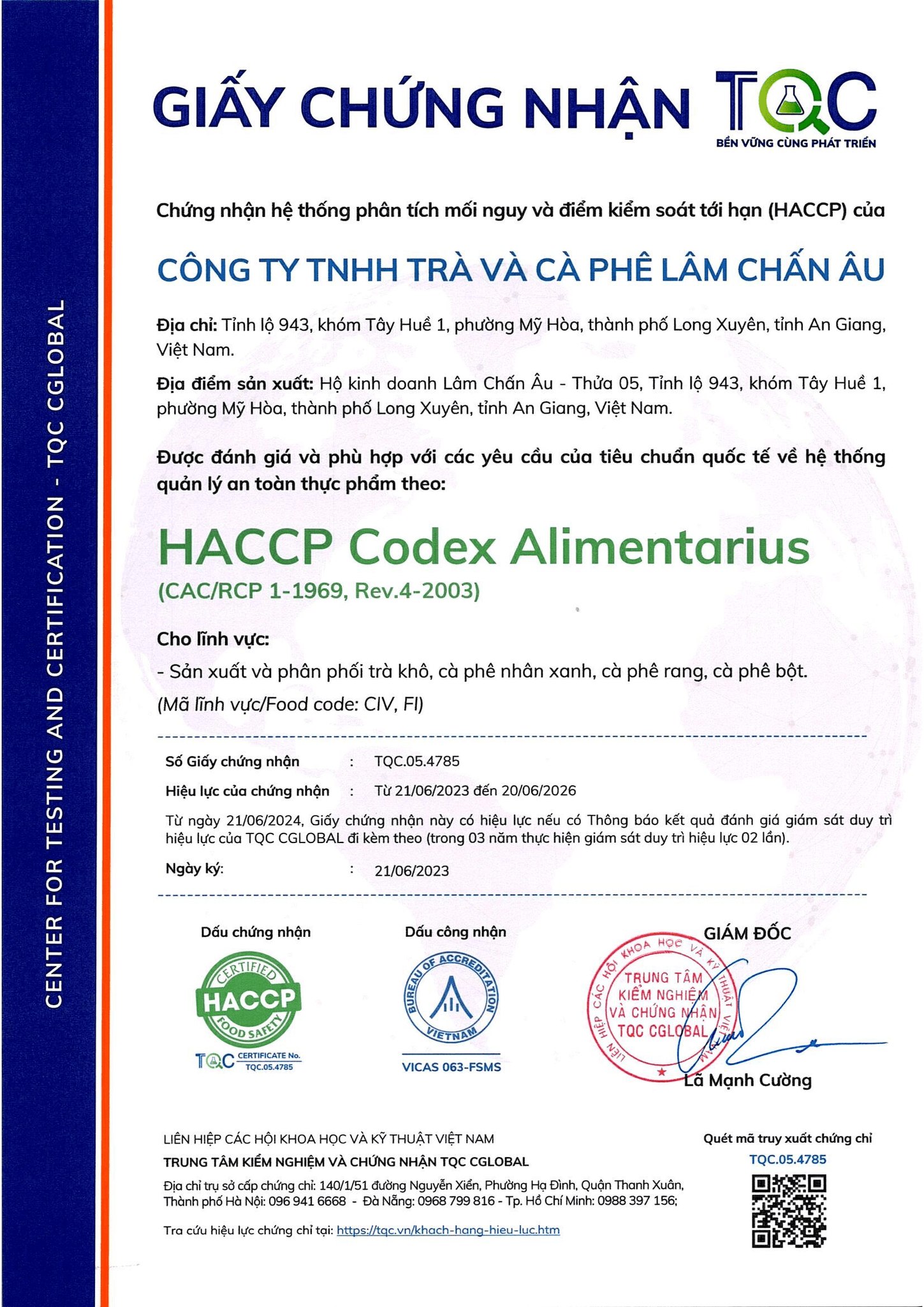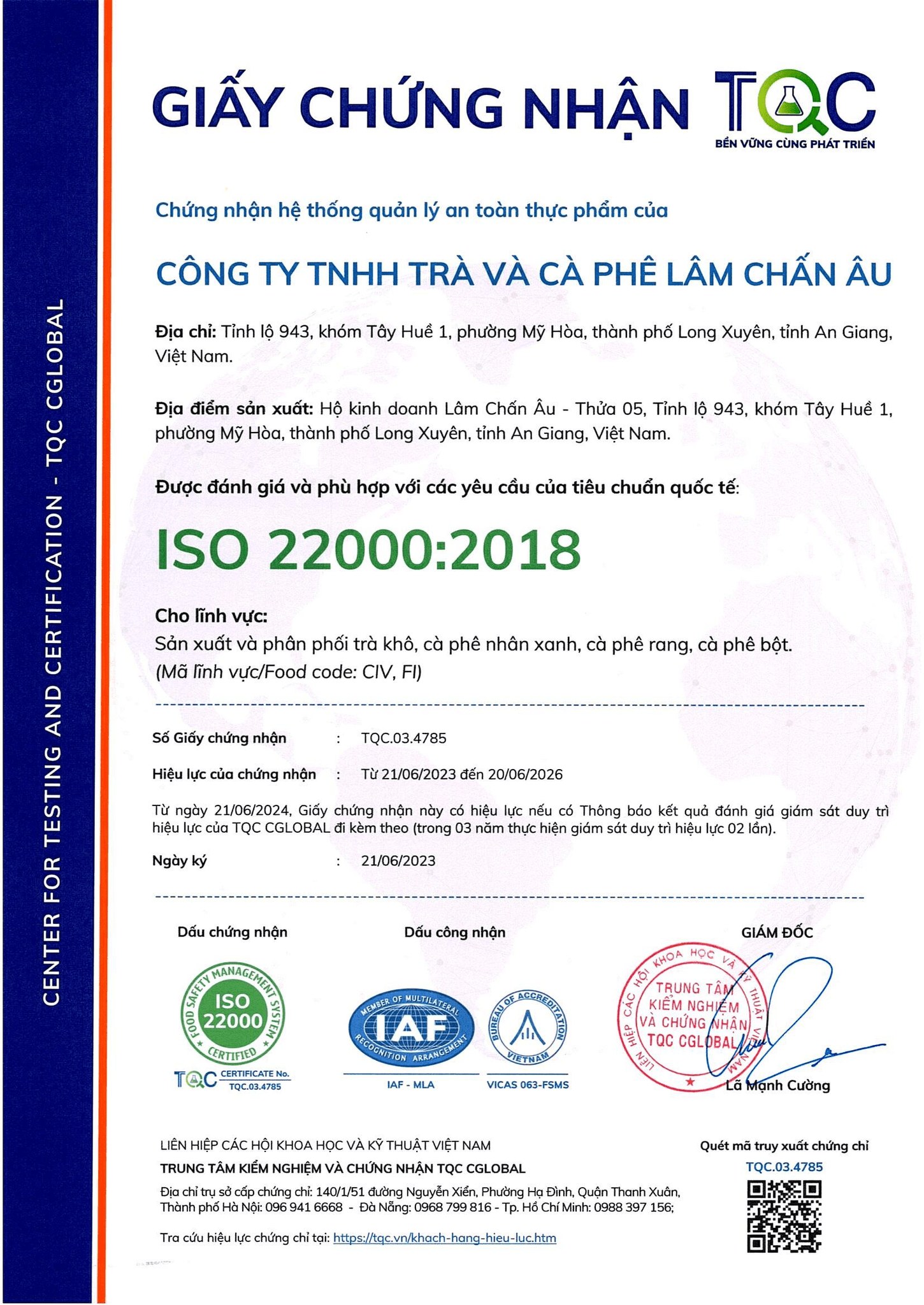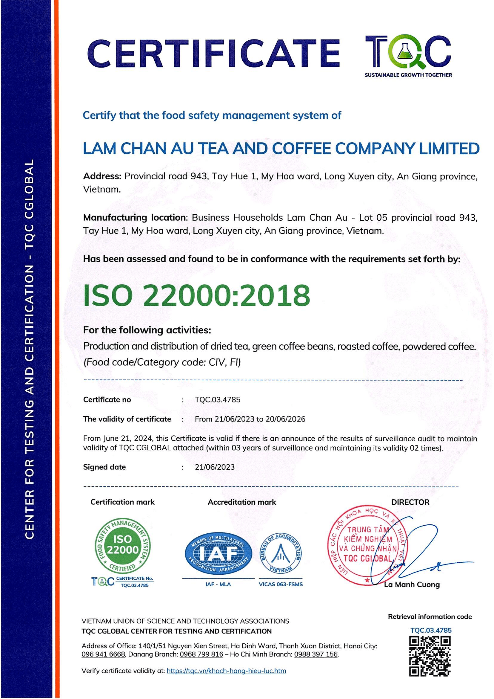 - Tên quốc tế: LAM CHAN AU TEA AND COFFEE COMPANY LIMITED