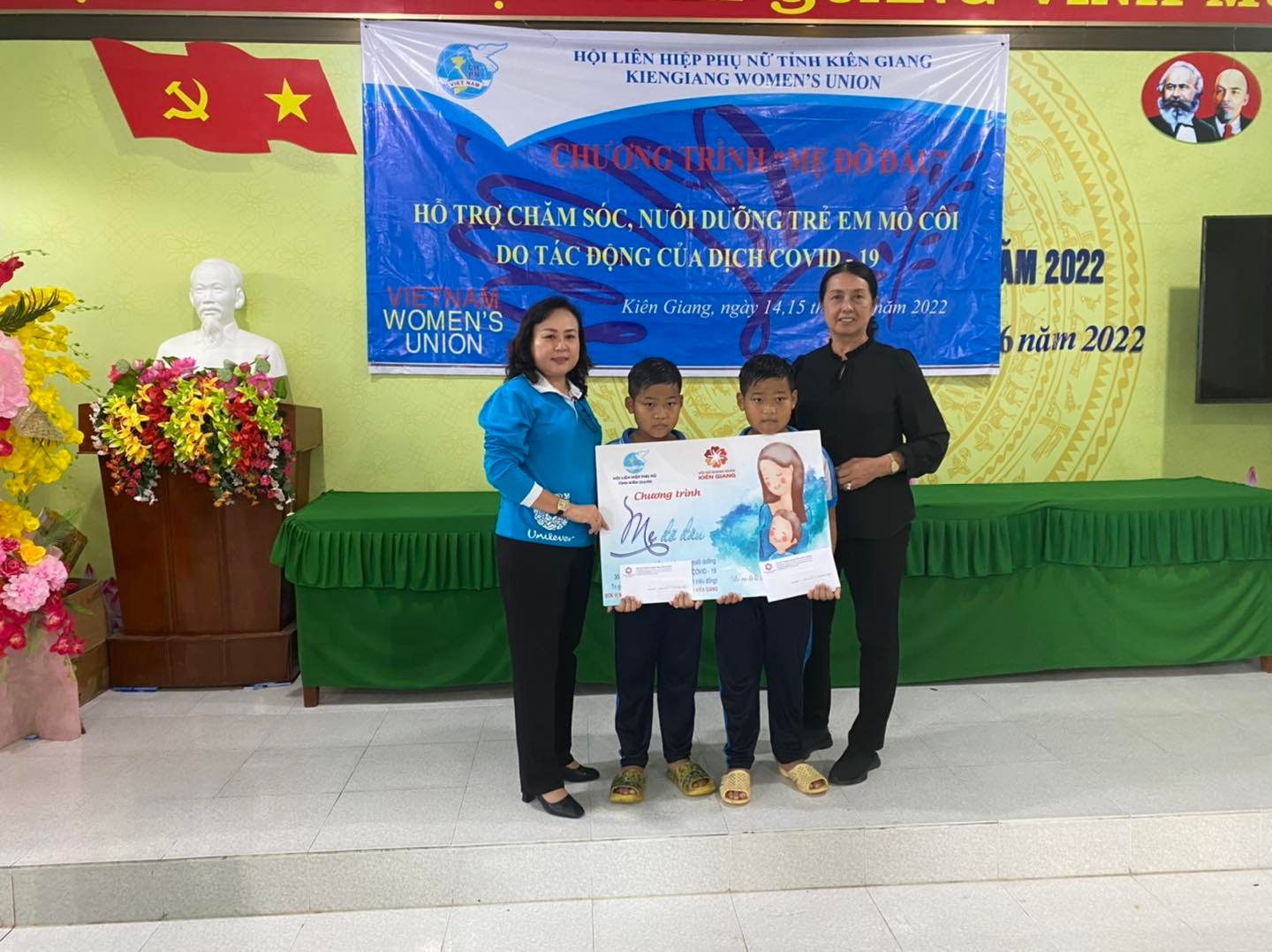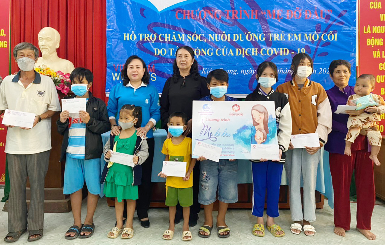 Lãnh đạo Hội Liên hiệp phụ nữ tỉnh và Hội Nữ Doanh nhân tỉnh Kiên Giang hỗ trợ, nuôi dưỡng các trẻ em mồ côi do tác động của dịch COVID-19