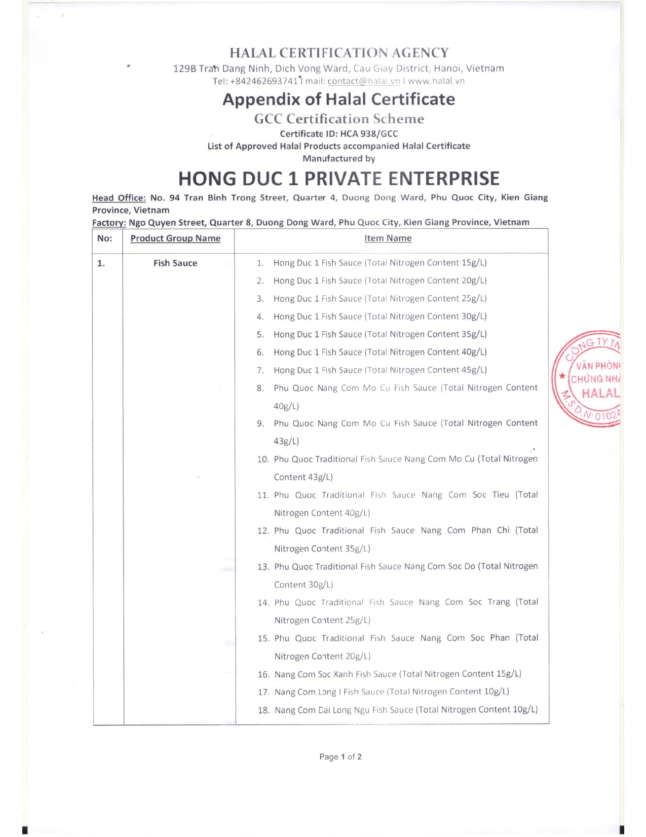 - Chứng nhận HALAL: phù hợp cho các quốc gia Hồi giáo;