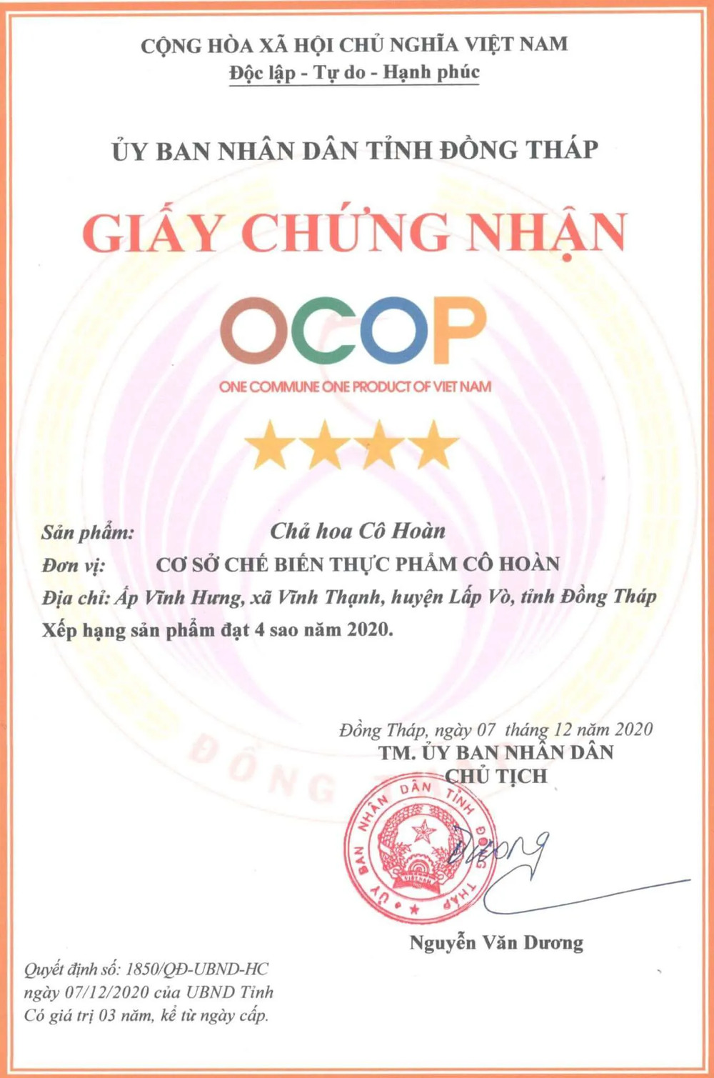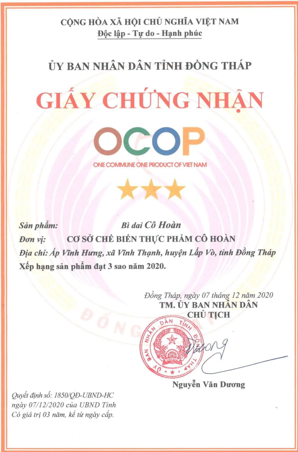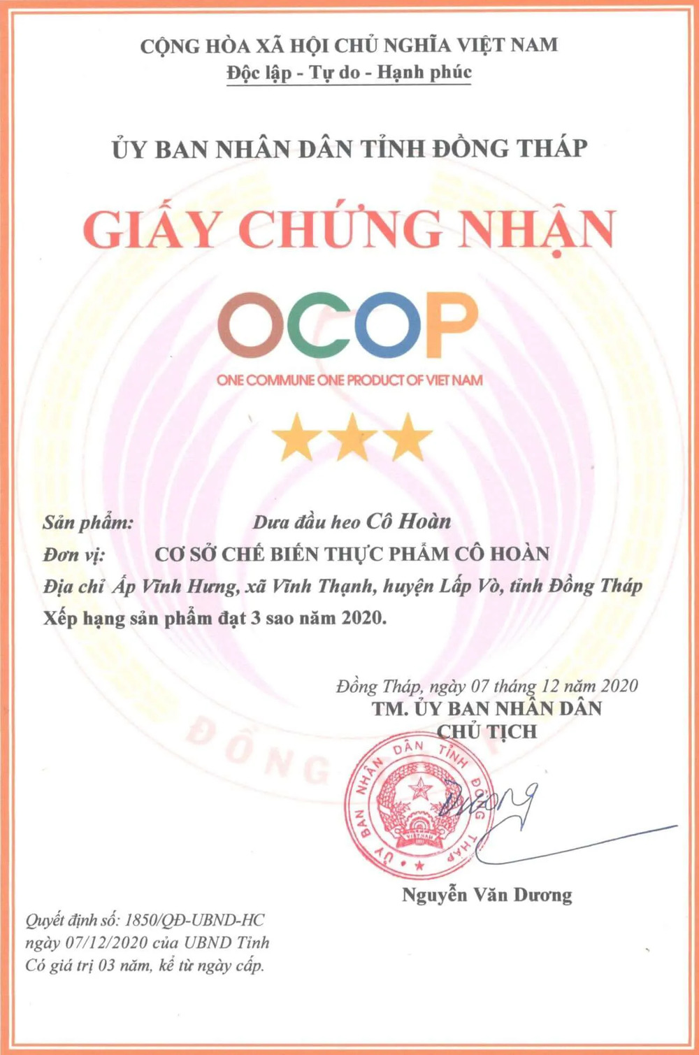 Đồng Tháp trao chứng nhận xếp hạng cho 99 sản phẩm OCOP năm 2020