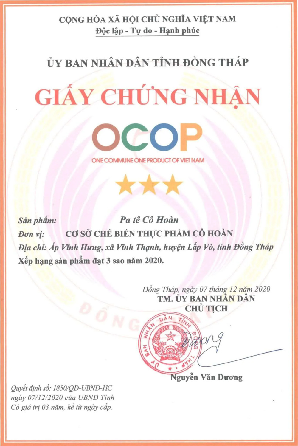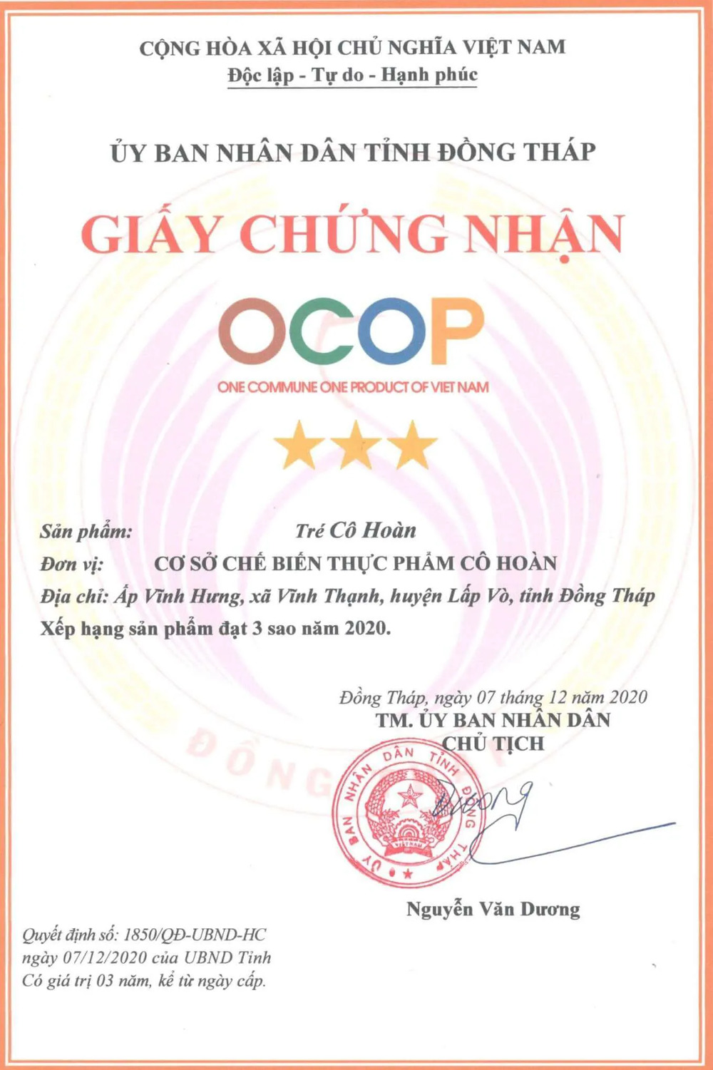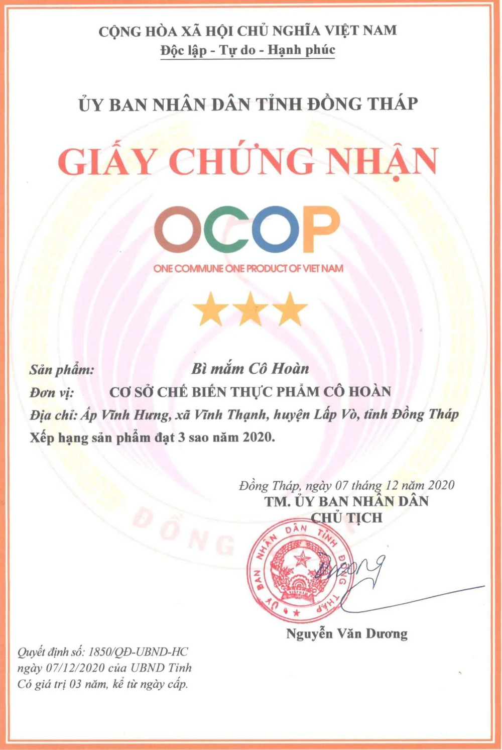 Đồng Tháp trao chứng nhận xếp hạng cho 99 sản phẩm OCOP năm 2020