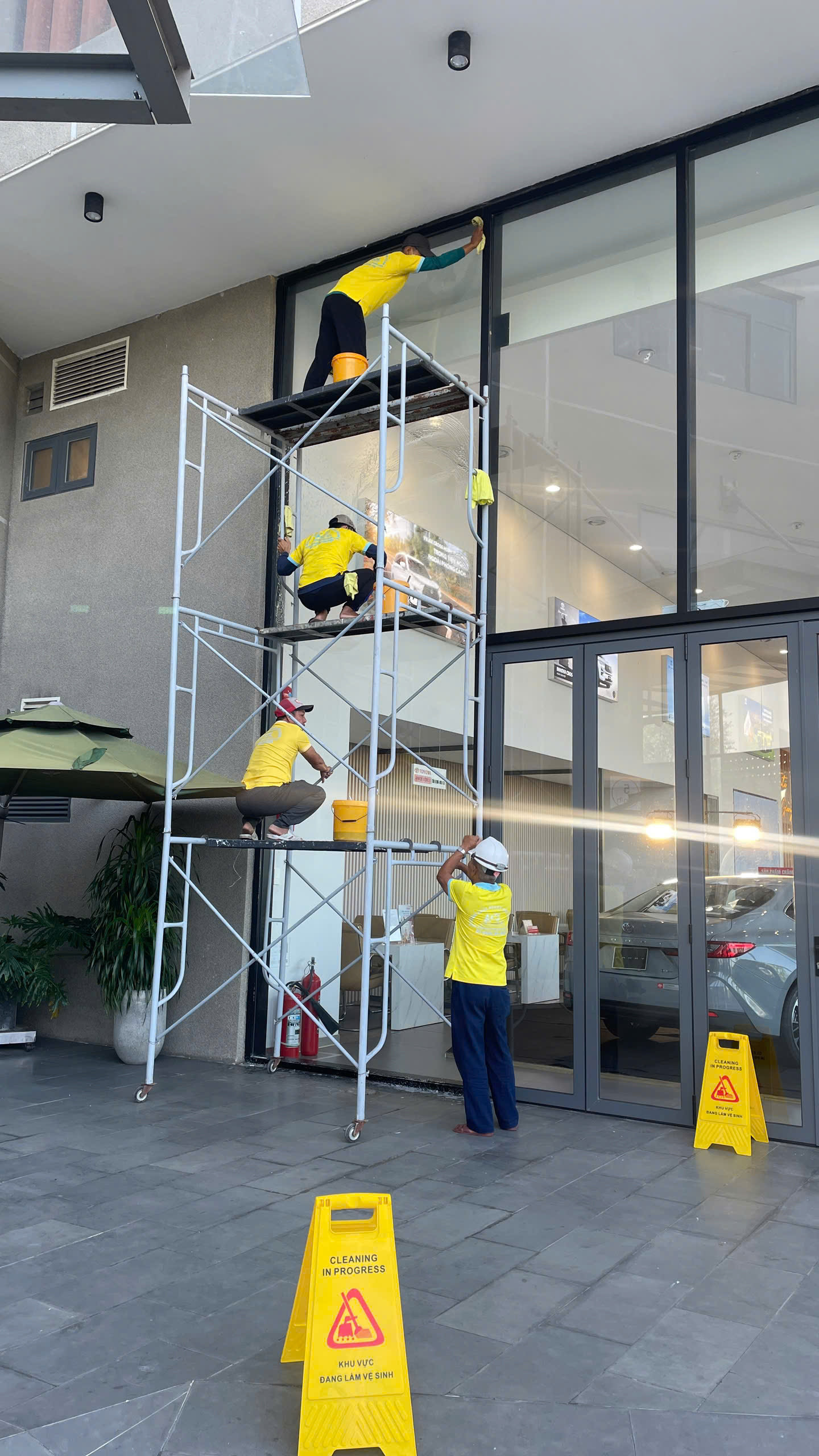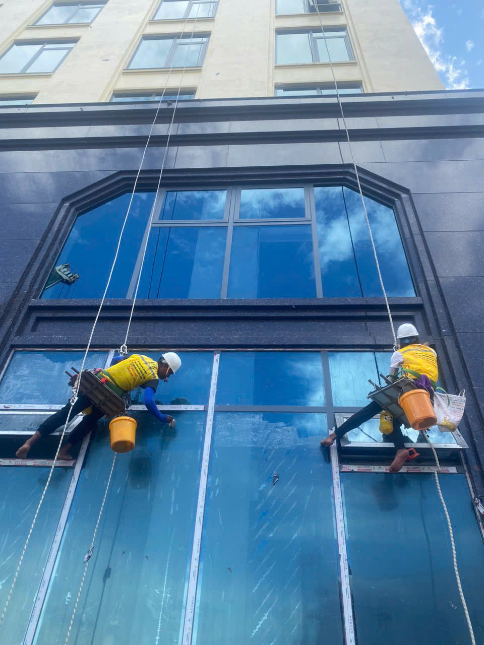 Lau kính tòa nhà: Đối với các tòa nhà cao tầng hoặc các công trình yêu cầu vệ sinh kính, AGC có đội ngũ chuyên dụng và thiết bị hiện đại để làm sạch kính cả trong và ngoài, đảm bảo độ sáng bóng và an toàn.