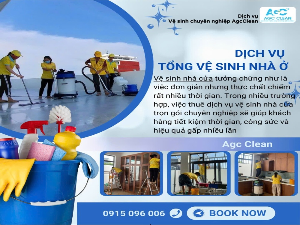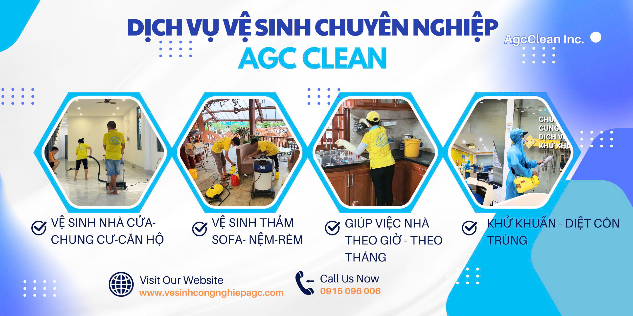 Vệ sinh văn phòng, nhà ở: Dịch vụ này giúp không gian làm việc hoặc sinh hoạt của bạn luôn sạch sẽ, gọn gàng và thoải mái. AGC cung cấp dịch vụ vệ sinh định kỳ hoặc theo yêu cầu, bao gồm lau dọn, quét dọn, hút bụi, và làm sạch các khu vực như bàn làm việc, cửa sổ, thảm, ghế, tường, và các thiết bị văn phòng.