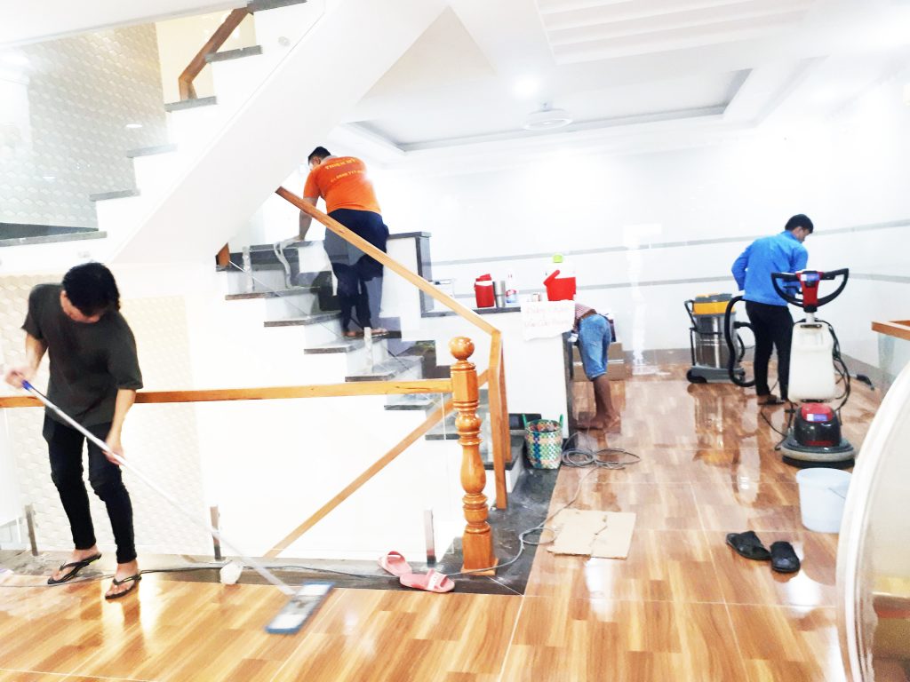 Tổng vệ sinh công trình: làm sạch toàn bộ công trình từ trên xuống dưới, từ trong ra ngoài. Bao gồm cả lau kính, khung nhôm, tường…, vệ sinh công nghiệp nội thất: vệ sinh sàn, đánh bóng sàn, phủ bóng sàn, giặt thảm, ghế, rèm, nệm…