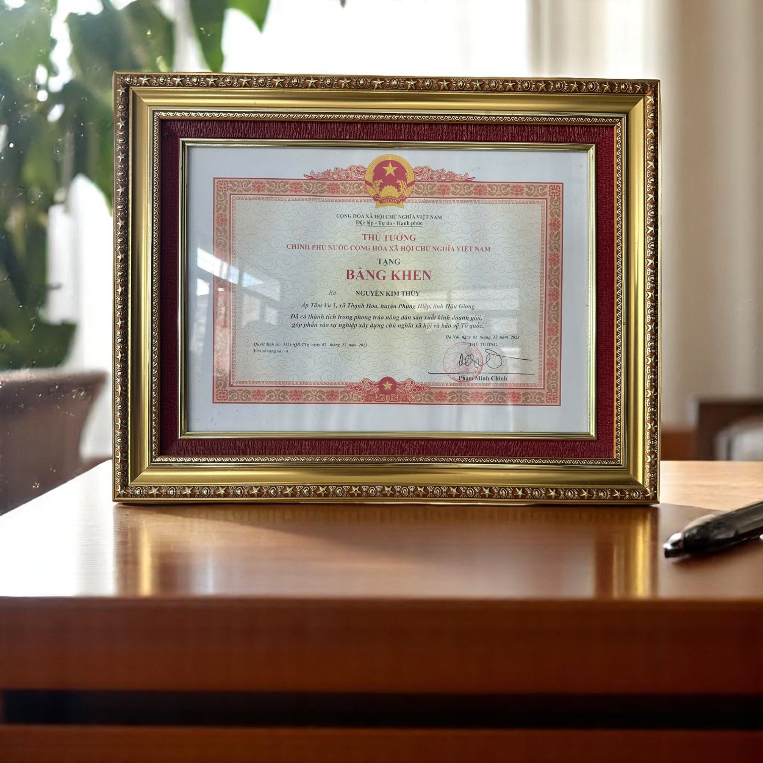 Bằng Khen Thủ Tướng " Phạm Minh Chính" Khen Tặng năm 2023