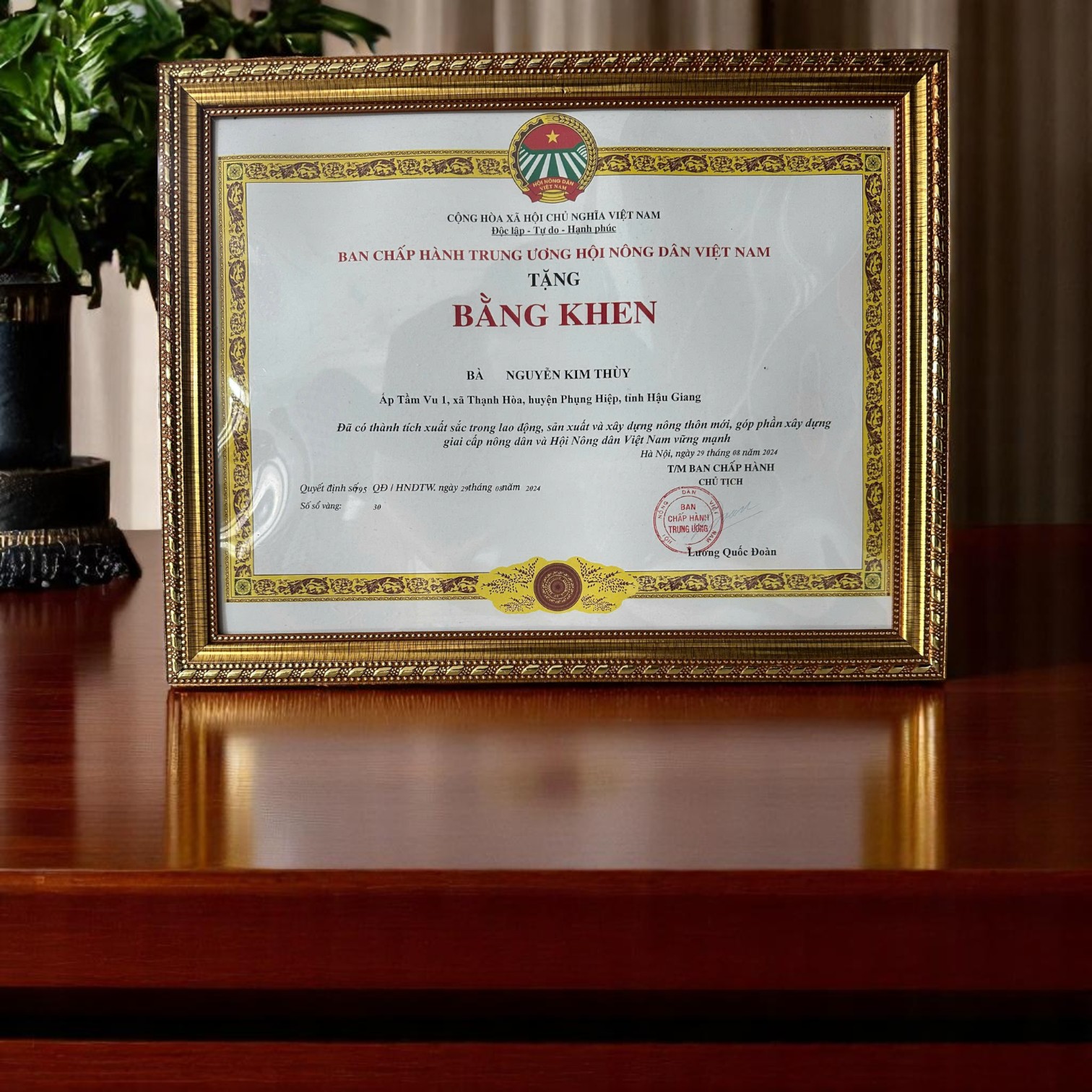 Ban chấp hành trung ương hội nông dân Việt Nam tặng: