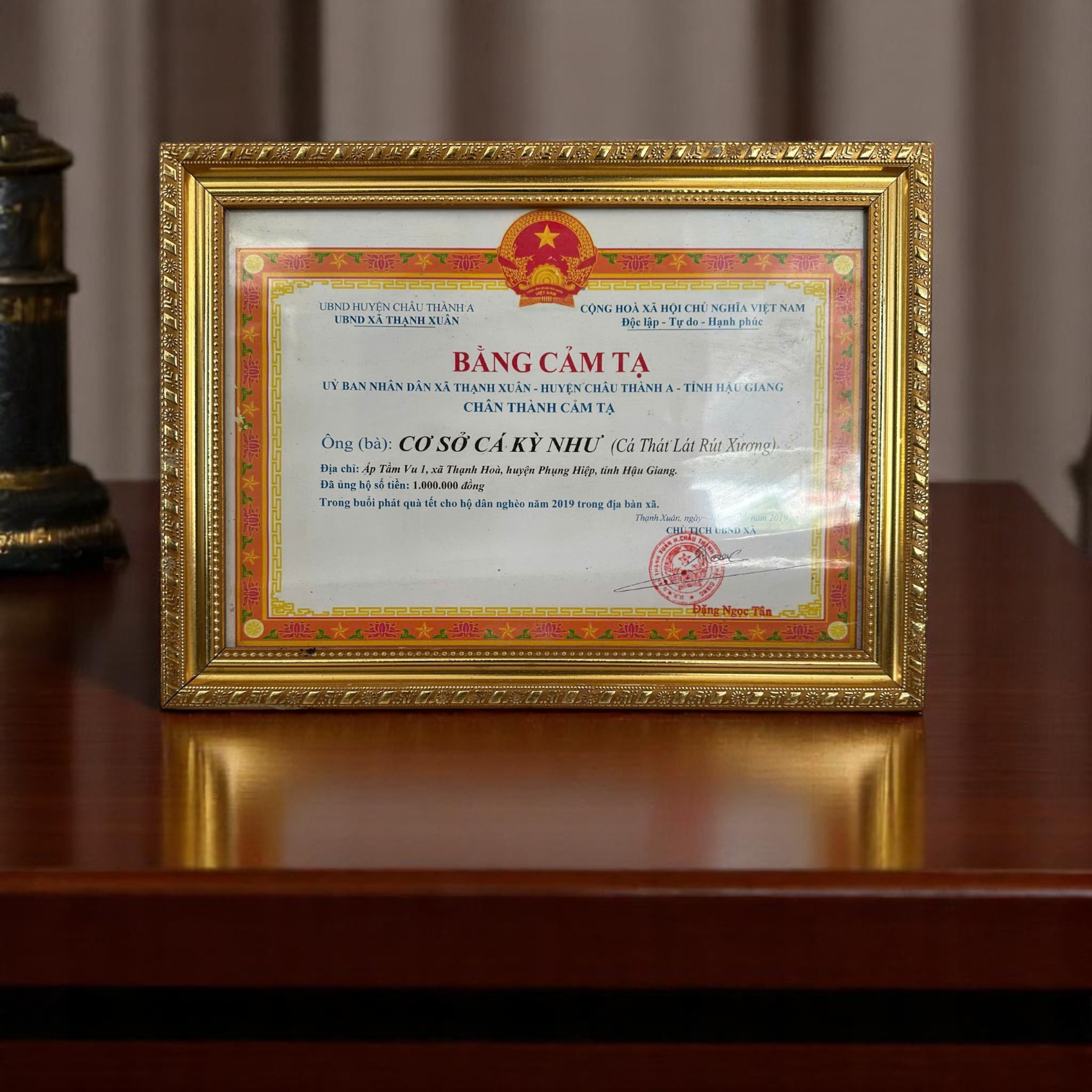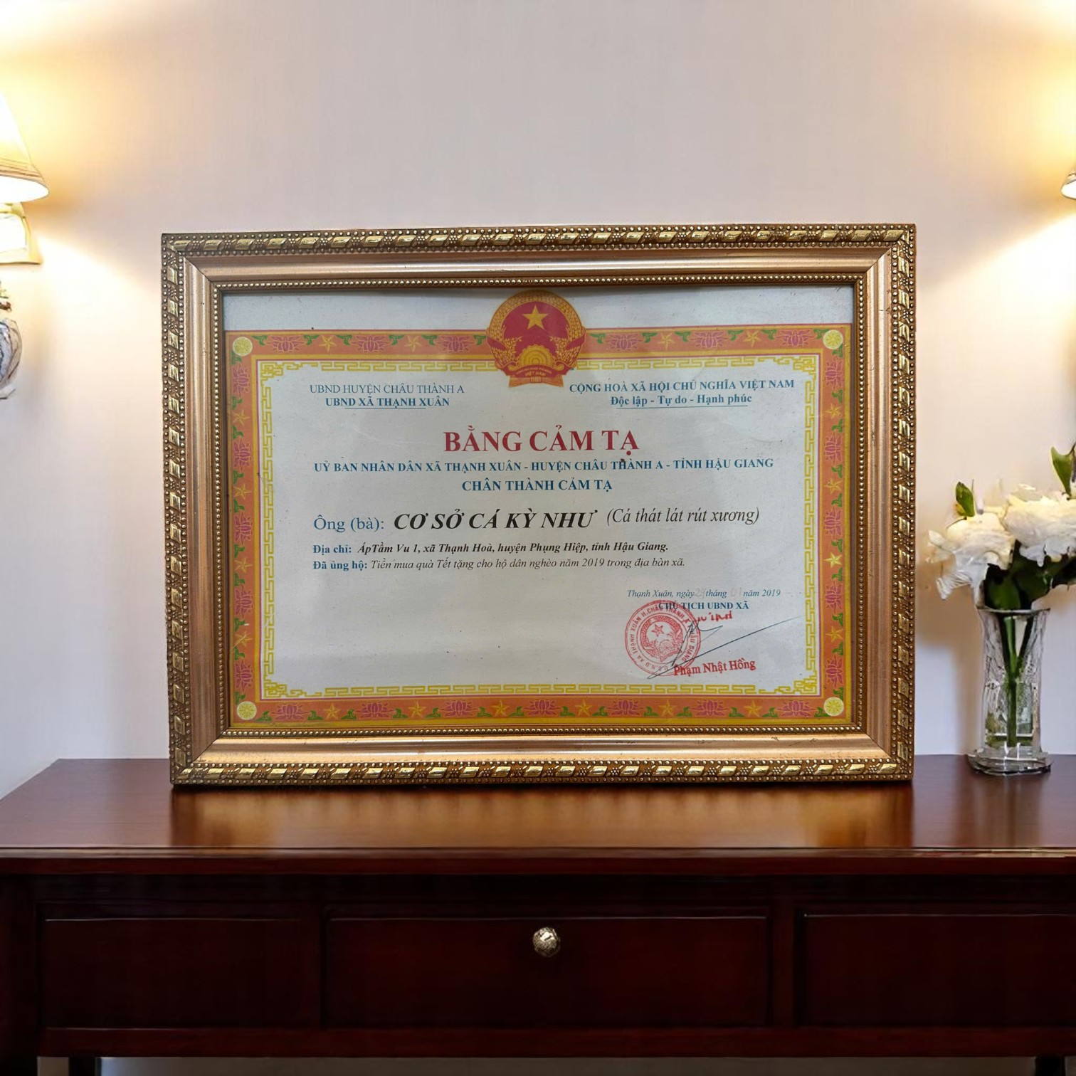 Chủ Tịch UBND Huyện Phụng Hiệp khen tặng: