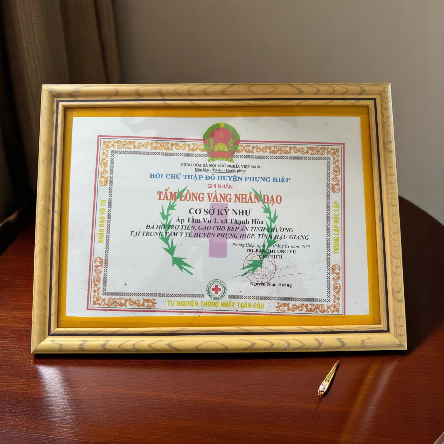 Giấy Cảm Tạ Của Hội Chữ Thập Đỏ Biểu Dương HTX Kỳ Như Có Nghĩa Cử Cao Đẹp