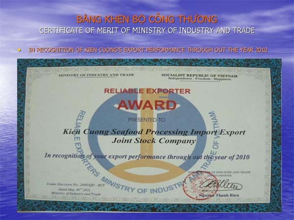 Công Ty CP Chế Biến Thủy Sản XNK Kiên Cường chuyên sản xuất và chế biến các sản phẩm từ thủy sản như: bạch tuộc, chả cá, tôm, mực…nhà máy công ty tọa lạc tại Cảng cá Tắc Cậu, Huyện Châu Thành, Tỉnh Kiên Giang, Việt Nam.