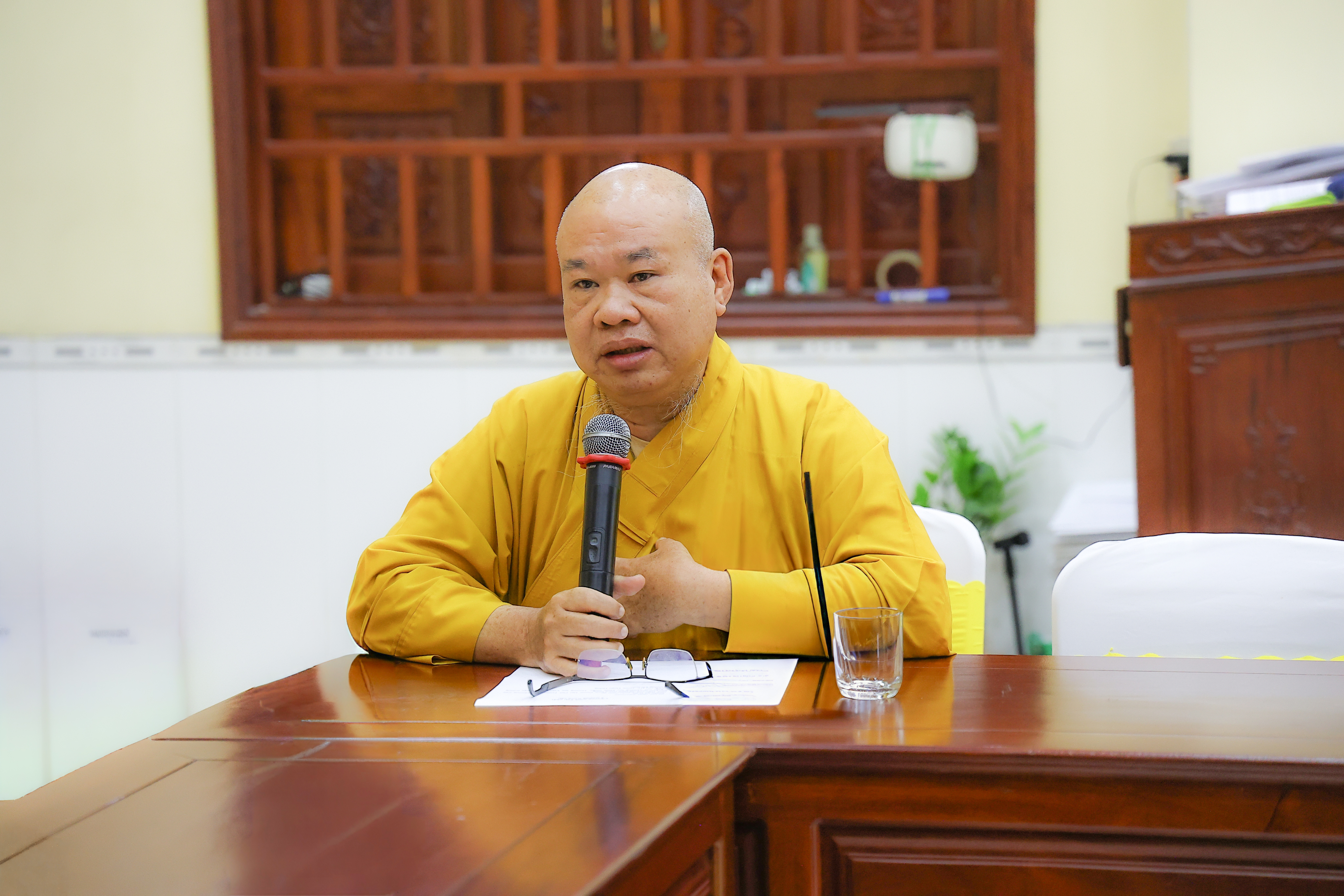 Hòa thượng Thích Thiện Thống – Phó Chủ tịch HĐTS, Trưởng Ban Trị sự GHPGVN tỉnh An Giang chủ tọa phiên họp.