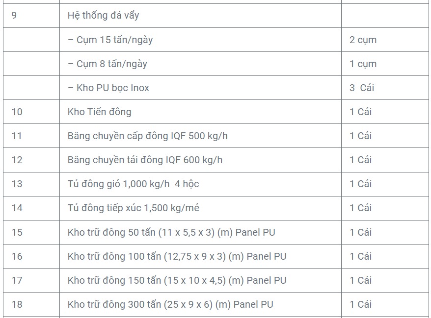 - 04 tủ đông, sản lượng 15 tấn/ngày