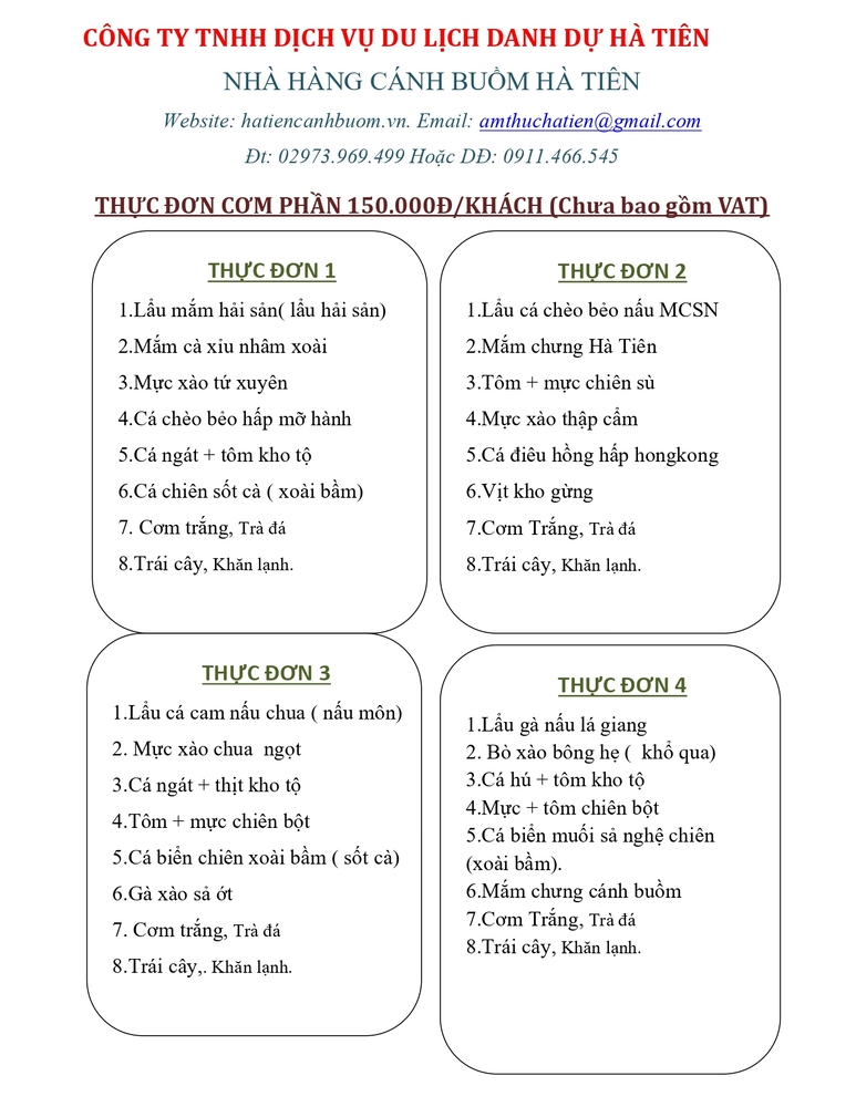 Để xem chi tiết Thực đơn cơm phần của Nhà hàng, vui lòng truy cập vào đường link bên dưới...