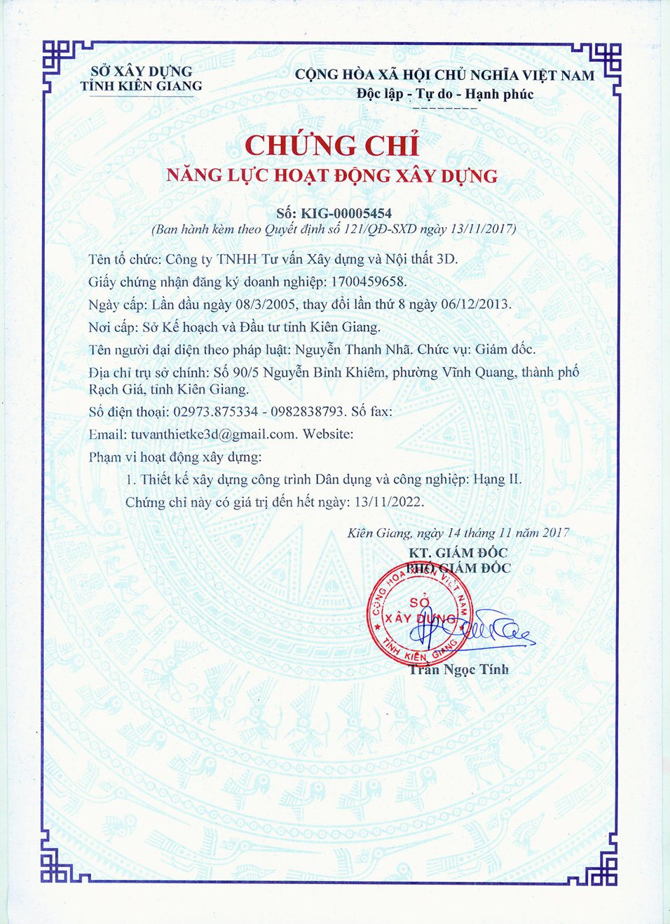 Công ty CÔNG TY TRÁCH NHIỆM HỮU HẠN TƯ VẤN XÂY DỰNG VÀ NỘI THẤT 3D được thành lập vào ngày 08 tháng 03 năm 2005 Với nhiều năm kinh nghiệm trong lĩnh vực xây dựng