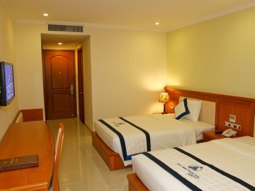 Nằm ở tầng cao nhất của khu nghỉ dưỡng, các phòng nghỉ với tầm nhìn tuyệt đẹp hướng ra biển Tây và khu đô thị mới Tây Bắc hoặc cảnh sân vườn thơ mộng của khu nghỉ dưỡng cùng thành phố Rạch Giá đáp ứng nhu cầu Quý khách về phòng nghỉ sang trọng trong thời gian lưu trú tại thành phố biển Rạch Giá.