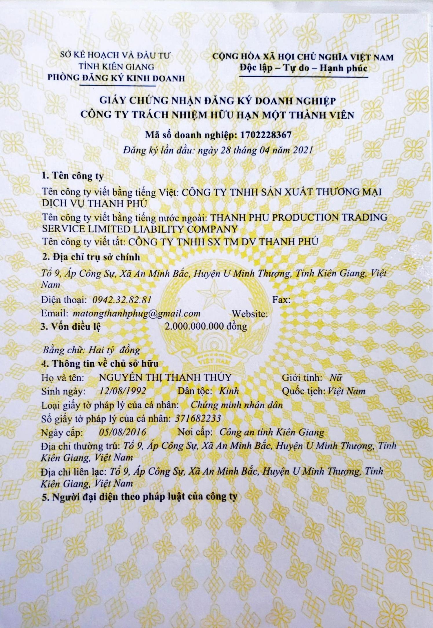 - Tên quốc tế: Thanh Phu Production Trading Service Limited Liability Company
