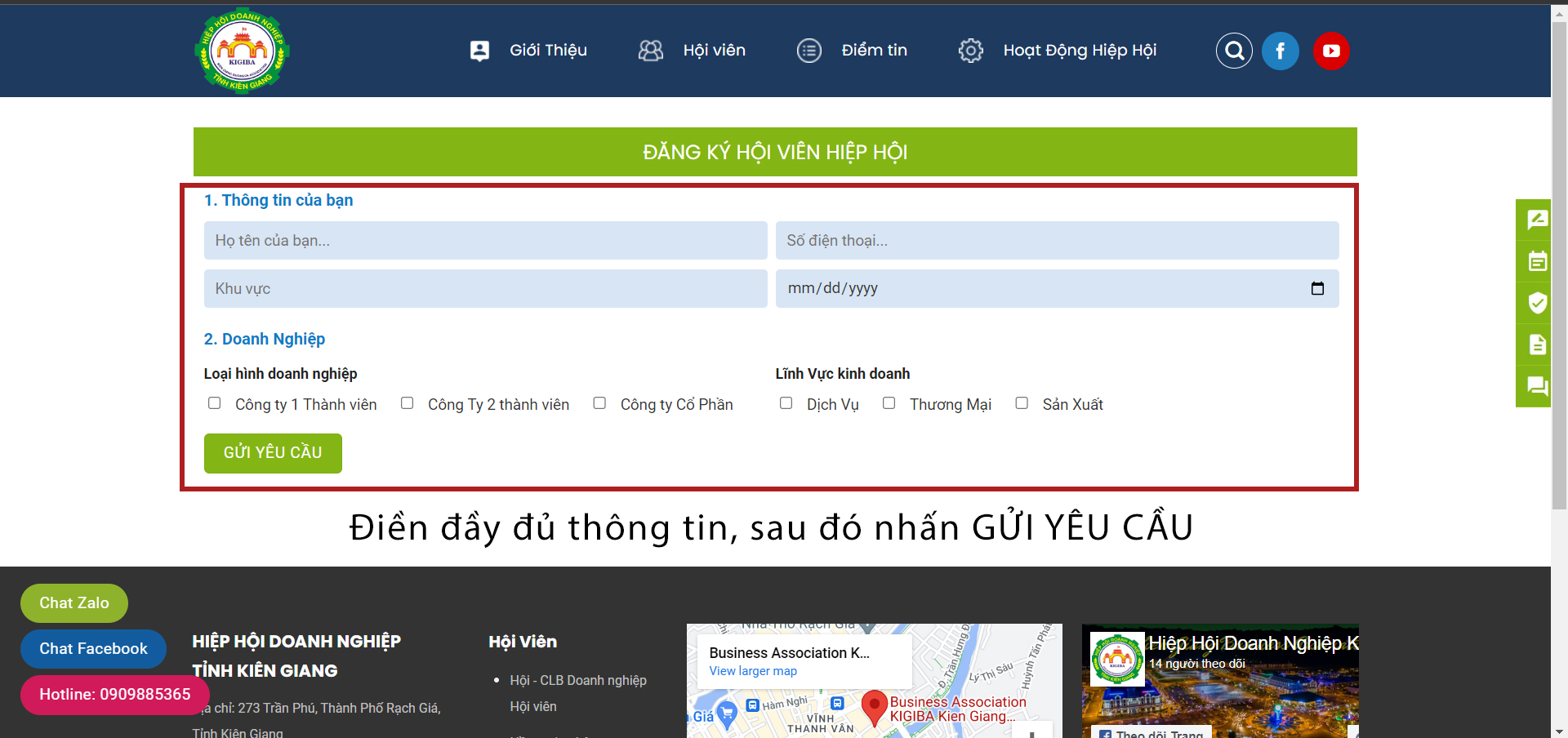 Quý Doanh nghiệp click vào mục Đăng ký Hội viên trên website, điền chính xác và đầy đủ thông tin, nhấn thẻ Gửi yêu cầu để hoàn thành.