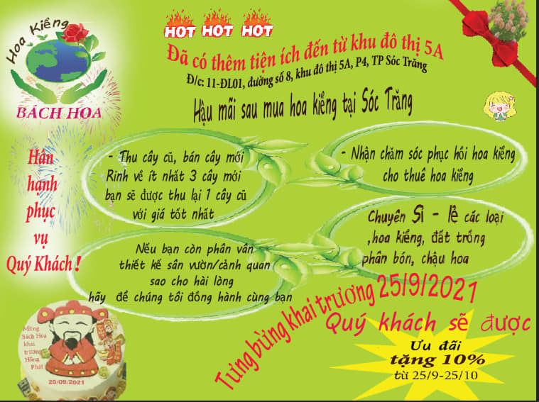 - Buôn bán sỉ & lẻ các loại cây kiểng, hoa kiểng