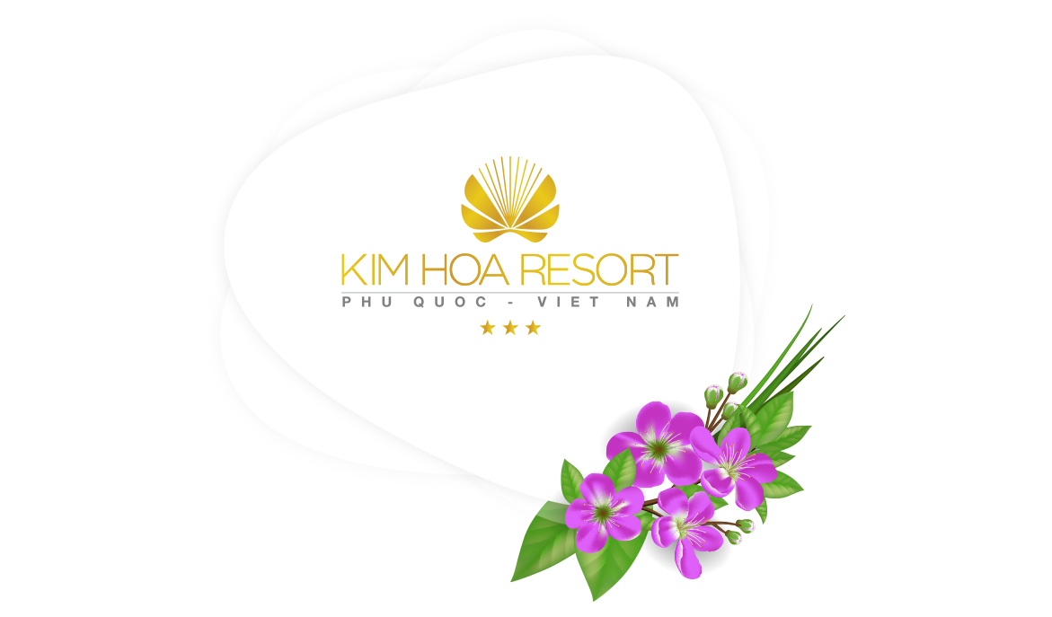 Logo Kim Hoa Resort được thiết kế theo phong cách đơn giản, sang trọng, quý phái và toát lên nhiều ý nghĩa. Sự kết hợp uyển chuyển của cánh hoa sim trên nền vàng tạo nên sự đẳng cấp, chuyên nghiệp. Hoa sim là loài hoa đặc trưng tại Phú Quốc, hoa cỏ 9 nhụy tượng trưng cho hạnh phúc tròn đầy viên mãn, hứa hẹn sự phát triển bền vững. Dưới ánh mặt trời, 6 cánh hoa sim lại càng rực rỡ, xinh dẹp và tỏa sáng, chính sự hiện hữu của KIM HOA RESORT góp phần kiến tạo vẻ đẹp đảo ngọc Phú Quốc; 69 khẳng định sự phát triển trường tồn của KIM HOA RESORT. Hình dáng logo liên tưởng tới ngọc trai, tinh hoa của Phú Quồc. Ánh sáng tỏa ra từ viên ngọc khi vỏ trai hé mở toát lên vẻ cuốn hút, khơi gợi. Ngọc trai hấp thụ tinh hoa đại dưong, mang đến nguồn năng lượng tích cực. vẻ dẹp thuần khiết này mang lại cảm giác an lành, hạnh phúc cho du khách lưu lại KIM HOA RESORT.