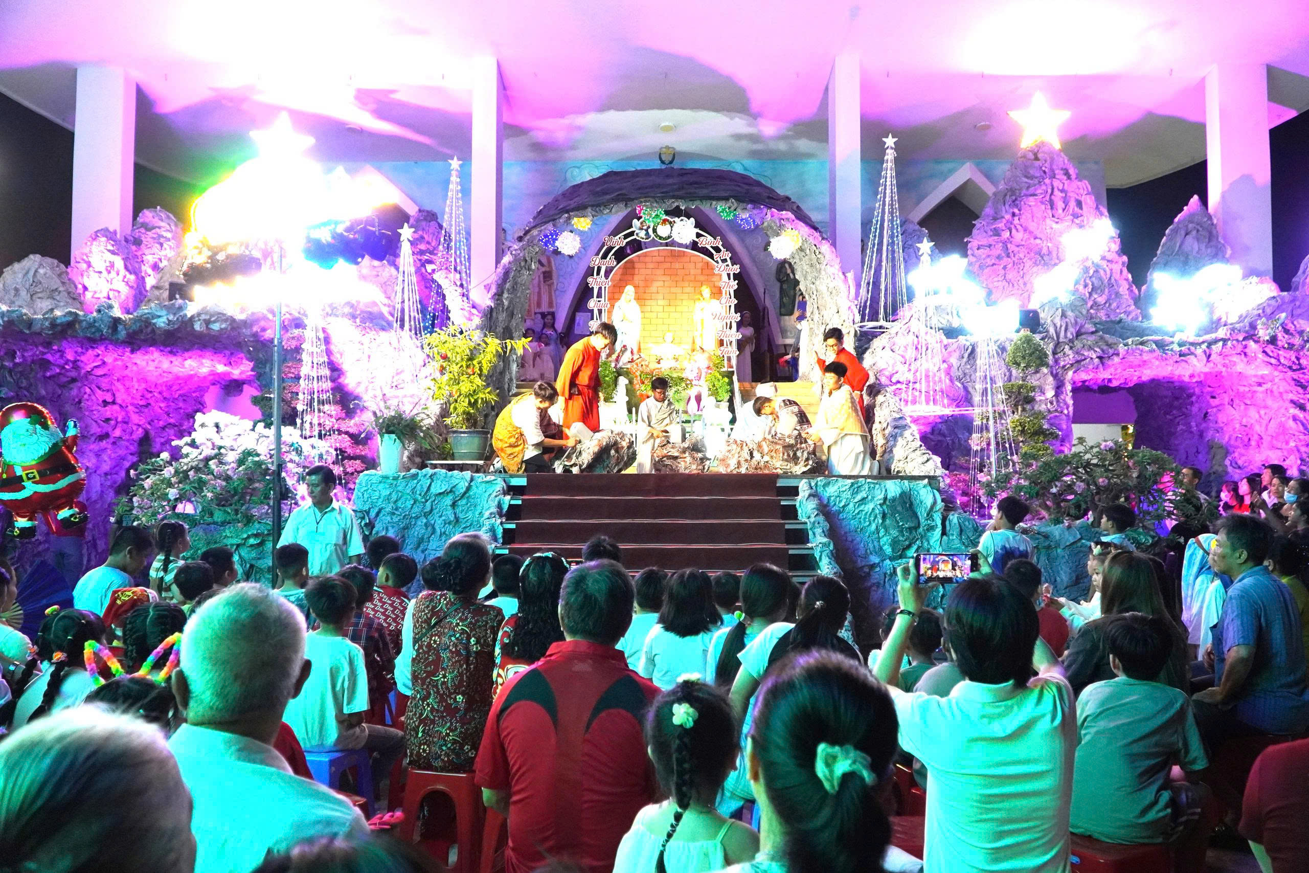 Điểm nhấn của đêm Giáng sinh là chương trình văn nghệ chào mừng Chúa Giáng sinh do các ca đoàn và giáo dân biểu diễn. Những ca khúc thánh ca quen thuộc với giai điệu nhẹ nhàng, sâu lắng đã lan tỏa thông điệp về tình yêu thương, sự sẻ chia và bình an. Trong không khí trang nghiêm, ấm áp, đông đảo người dân và du khách cùng tham dự các nghi thức mừng Chúa Giáng sinh, gửi gắm những lời cầu nguyện cho một mùa Noel an lành, hạnh phúc và một năm mới bình yên.