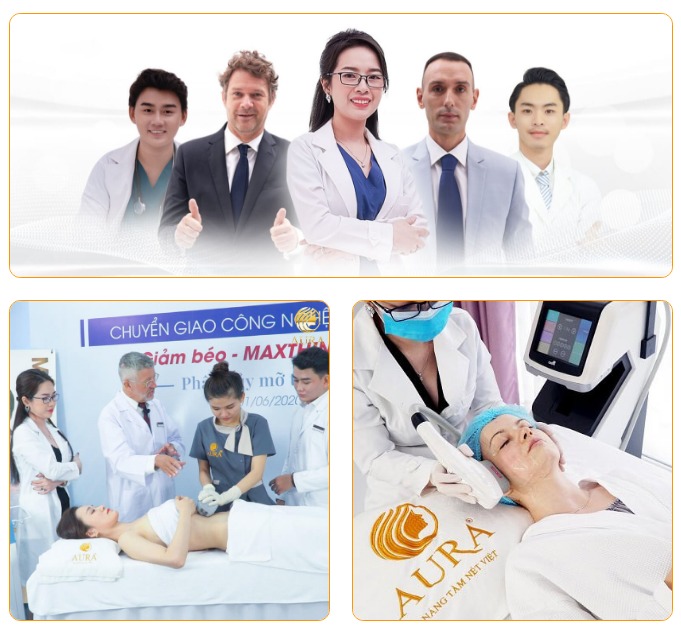" Với mục tiêu mang đến vẻ đẹp khoẻ từ sâu bên trong, Thẩm mỹ viện Quốc Tế Aura luôn nỗ lực và không ngừng trong việc hợp tác với hiệp hội, các tập đoàn và các hãng mỹ phẩm nổi tiếng đến từ nhiều quốc gia có thế mạnh về làm đẹp bậc nhất thế giới như Hàn Quốc, Hoa Kỳ, Đức,... Mỗi khách hàng khi đến với Aura đều được thăm khám kỹ lưỡng, lên phác đồ điều trị riêng biệt, đảm bảo tính phù hợp và mang lại hiệu quả cao nhất. "