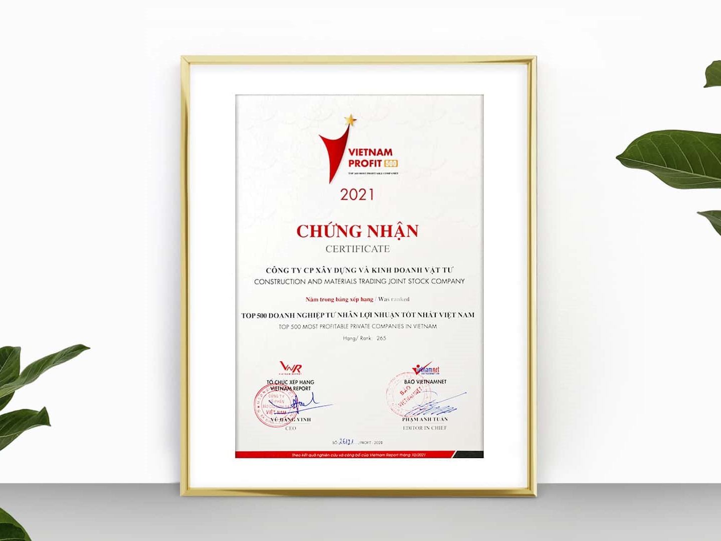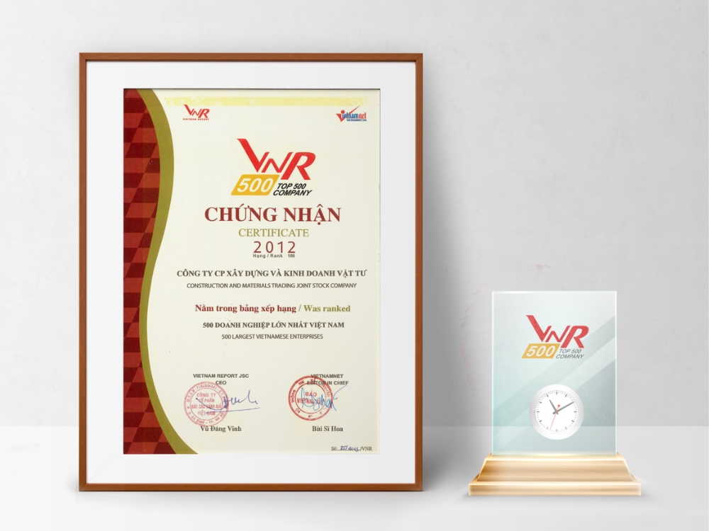 - 5 năm liên tiếp được Báo Viet Nam Net (VNR 500) bình chọn là một trong 500 doanh nghiệp dẫn đầu tại Việt Nam.