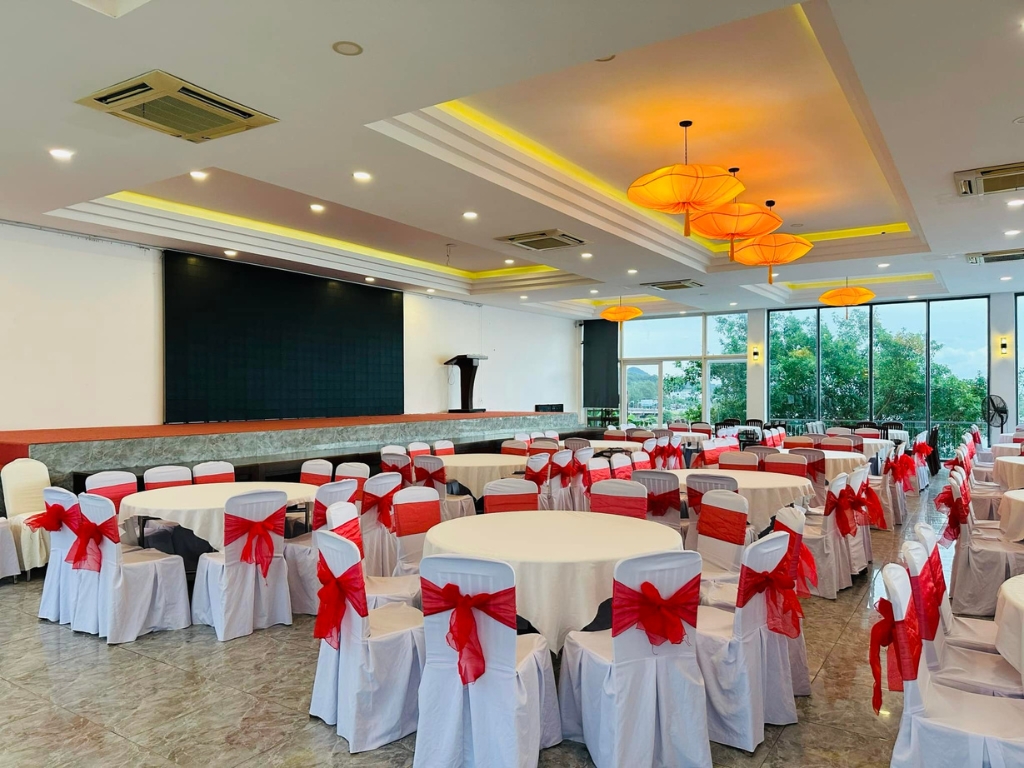 Với không gian thoáng mát, view hướng biển, Khách sạn Pháo Đài Hà Tiên là nơi lý tưởng để tổ chức sinh nhật , hội họp, tiệc cưới, BBQ ngoài trời.