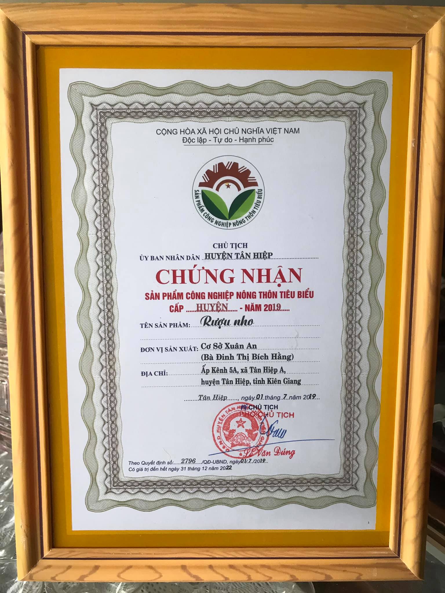Với sự nỗ lực cố gắng của tập thể đơn vị, các sản phẩm của Rượu Nếp Xuân An đã dạt được chứng nhận Sản phẩm Công nghiệp Nông thôn tiêu biểu cấp huyện.
