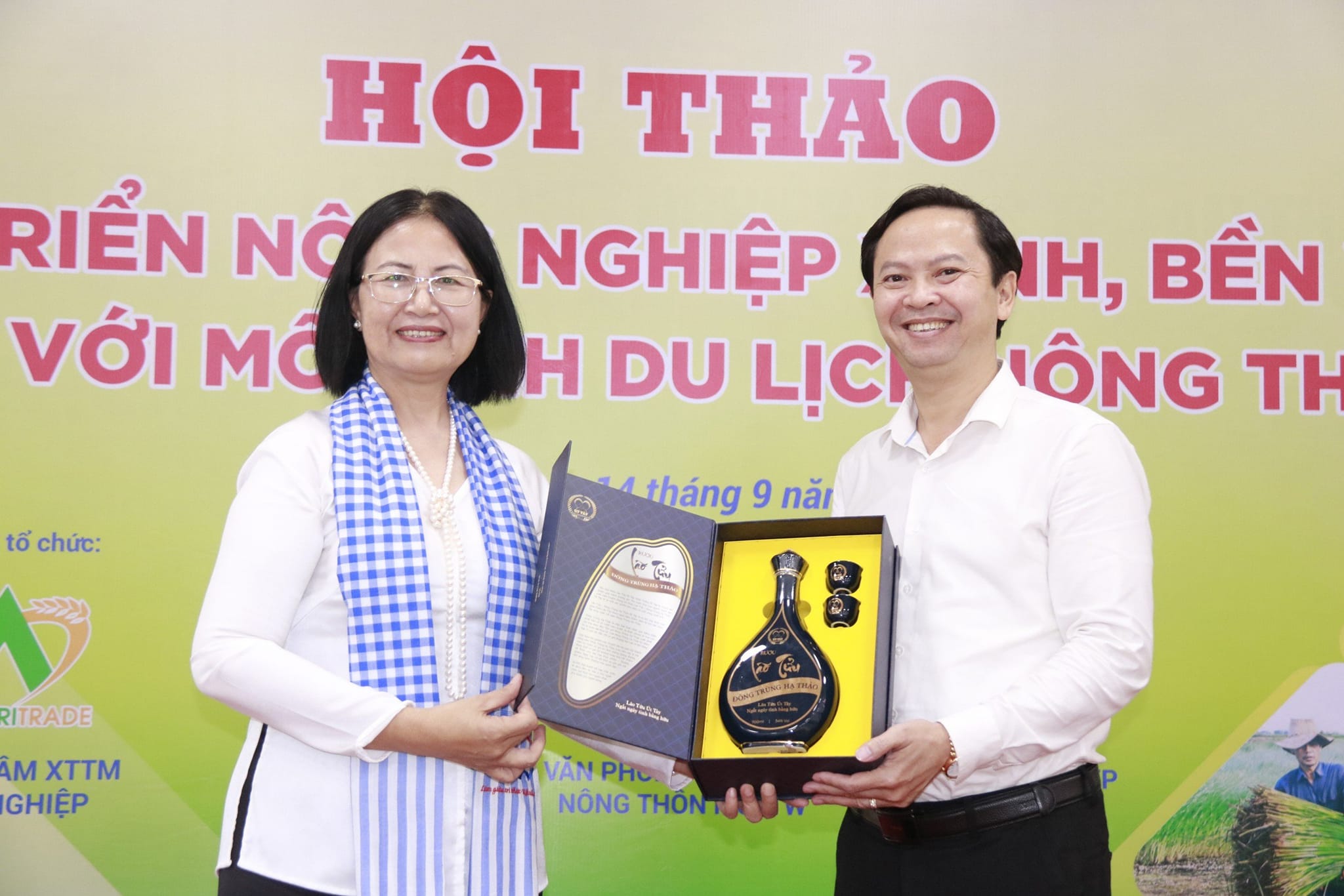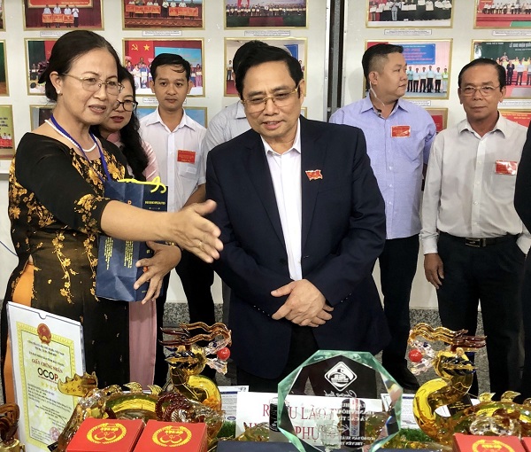 Bà Võ Thị Phương Trang giới thiệu sản phẩm rượu Út Tây với Thủ tướng Phạm Minh Chính