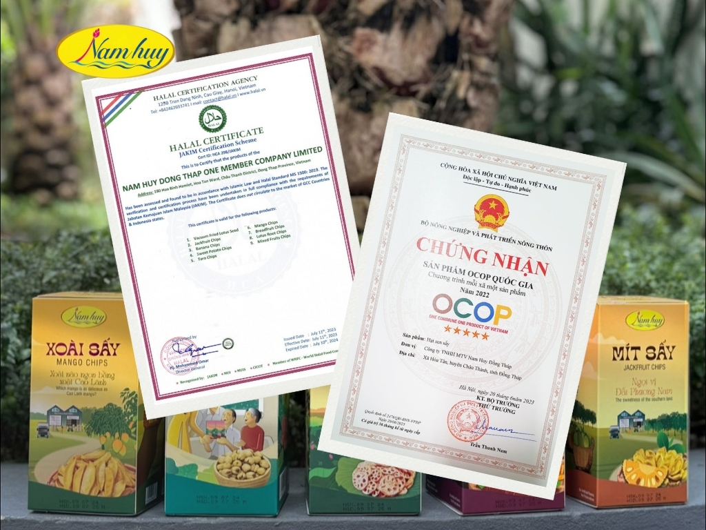 - Chứng nhận HALAL cho các dòng sản phẩm trái cây sấy