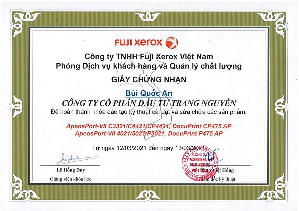 “Phát triển TRANG NGUYỄN trở thành doanh nghiệp chuyên nghiệp hàng đầu tại Đồng bằng sông cửu long về tư vấn và cung cấp các gói giải pháp máy văn phòng”.