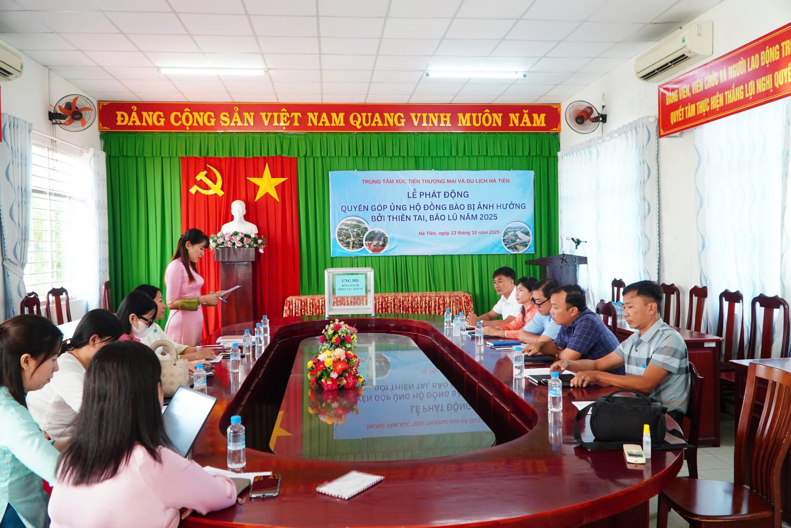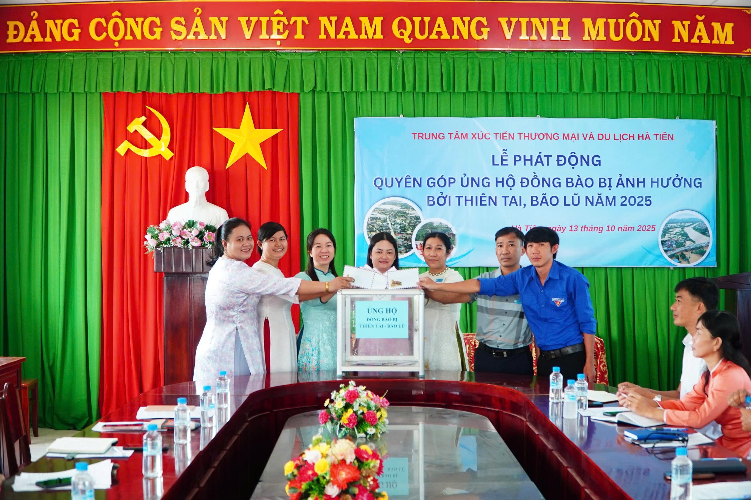 Phát biểu tại lễ phát động, Giám đốc Trung tâm Xúc tiến Thương mại và Du lịch Hà Tiên Nguyễn Thị Mộng Quyên kêu gọi toàn thể viên chức, người lao động, các doanh nghiệp phát huy truyền thống “tương thân tương ái”, “lá lành đùm lá rách”, cùng chung tay sẻ chia với đồng bào vùng bị thiên tai, bão lũ, giúp họ sớm khắc phục khó khăn, ổn định cuộc sống.