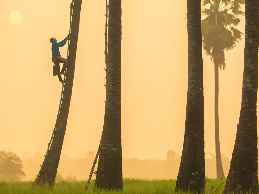 - Thứ nhất, việc thu hoạch nhựa cây trong mùa mưa rất trơn trượt và nguy hiểm cho người nông dân, vì cây thốt nốt rất cao (khoảng 20-30 mét).